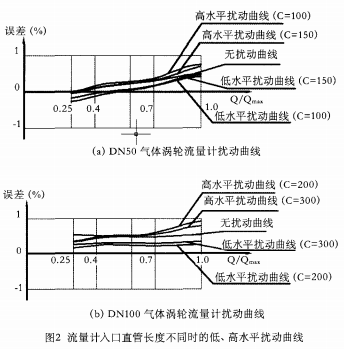 (2)随着流量计表前直管段的加长,流量计高、低水平扰动的曲线基本上是逐渐接近无扰动的曲线;