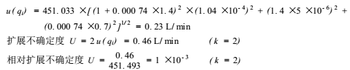 这样,已修正的标准体积管流量的合成相对标准不确定度可用公式(8)计算