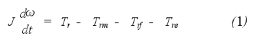 作用在涡轮上的力矩大致分为以下几个:流体通过涡轮时对叶片产生的推动力矩Tr,流体沿涡轮表面流动时产生的粘滞摩擦力、涡轮轴与轴承之间、齿轮与齿轮之间等机械摩擦阻力矩Trm,流体通过涡轮时对涡轮的流体阻力矩Trf、磁电转换器对涡轮产生的电磁反作用阻力矩Tre。由此可以建立涡轮的运动微分方程: