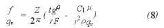 在紊流流动状态时,流体流动阻力与流体密度ρ和流量qv成正比,此时可不计流体粘度的影响,故Trf=C2 ρqv²,式中C2 为常数,代入式(7)得: