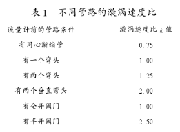 式中:L—上游直管段长度;f—管道内摩擦系数,处于紊流状态时f=0.0175;Dg—流量计的公称直径;k—漩涡速度比,由流量计前管路情况确定(见表1)。