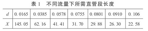 3.直管段长度和卫生型桃色在线视频精度的初步预测在工程设计中,根据流体性质、流量和雷诺数确定α和d值。这样,按照式(5)就可以依不同的流量计精度要求,对直管段长度进行初步预测,或确定直管段长度后,对流量计的精度做初步预测。当δ= 0.2%时,不同流量下所需直管段长度见表1。