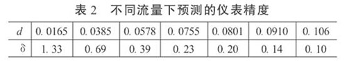 当X= 30时,不同流量下仪表精度见表2