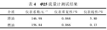 Φ25流量计测试数据如表3所示。