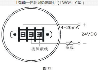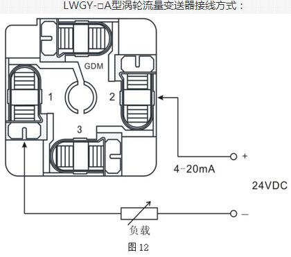 智能型涡轮流量计传感器4-20mA两线制的一般是这样的:4-20mA输出端的+接上24V+;4-20mA输出的-接您设备的4-20mA输入端+,4-20mA输入端-接24V-端接线方式