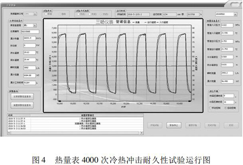 本文研究的 4000 次冷热冲击试验的实现具有以下特点: (1)基于“工控机 +水泵 + 消防桃色成人在线视频”的闭环控制系统,实现了流量自动反馈调节,满足试验要求; (2)通过四个开关阀的时序切换,自动控制试验温度,很好的完成了 4000 次温度冲击试验; (3)通过“工控机 + 数据数据采集卡”的数据采集系统,实时监控试验过程中的流量、温度、压力等相关参数,实现试验方式的自动控制,并能对试验数据进行分析与评定。 (4)试验的全过程为智能自动化,可无人员留守看护。试验结果可直接反映出热量表在长时间运行后的可靠性。为我国热量表耐久性试验研究提供检测手段,为促进产品质量提升做好技术保障。