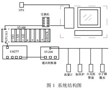 集气站是收集气井所生产天然气的站场,在集气站内对天然气进行节流降压、加热、调压计量等各种工艺预处理,设备众多且分散。为方便进行检测和操作,必须进行统一的数据采集,在监控台进行数据的管理。集气站设备主要包括加热炉、防冻液流量计、分子筛、火灾报警盘,以及供电设备 UPS 等,这些不同厂家的设备基本都支持Modbus 协议,通过 Modbus 通讯可以将这些数据采集。为了有效降低成本,设计了如图 1 所示的系统。系统采用西门子 S7-300 控制器,通过以太网连接上位机监控软件,再通过 MP277 连接S7-200 的方式。S7-200 控制器自带 RS485 接口,能够进行 Modbus 通讯,采集现场各种设备数据。*后通过以太网通讯将设备数据上传至监控软件,方便操作人员进行监控,该方案简单有效,能够实现集气站内设备的状态监控,数据处理,有效的进行天然气的生产工作。