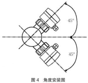 垂直安装时确保流向由下而上,如图 4 中箭头所示,应与管道水平中心线成 45 度角安装防冻液流量表。
