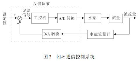 通信控制系统由工控机、变频器、水泵、数据采集卡、双氧桃色成人在线视频等组成。在整个热量表耐久性试验装置中,双氧桃色成人在线视频与被试验热量表串联在试验管路中。系统设定流量值 qs,通过工控机发送信号给变频器,来控制水泵运转,系统通过研华数据采集卡 PCI1711 将采集到的双氧桃色成人在线视频当前瞬时流量值反馈给工控机,工控机将返回流量值与设定流量值qs进行比较,从而确定是否需要重新调整变频器频率控制水泵转速。此过程是一个完整的闭环 PID 控制过程,其闭环控制过程如图 2 所示。 2. 2 管路切换系统管路切换主要由冷热水箱、水泵、开关阀等组成。要实现热量表耐久性 4000 次冷热冲击试验,需要实时控制管路中热水与冷水的交替使用。