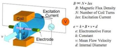 基本上,当导电液体流过磁场时,会感应出电压。为了测量该产生的电压(与流动的液体的速度成正比),使用了两个彼此相对安装的不锈钢电*。