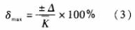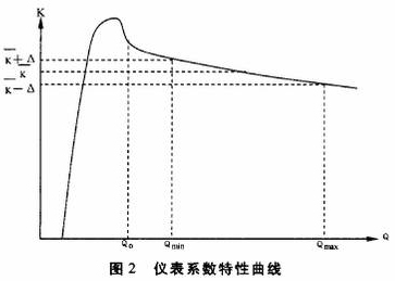 图2显示测量出电脉冲信号频率F用平均仪表系数`K计算得到的Q值,在Qmin~Qmax范围内的*大相对误差为: