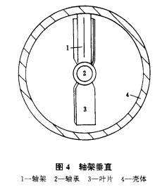 为了降低启动流量,把图4中的轴架顺时针旋转90°,轴架为水平位置如图5所示。这样,上、下叶片都受到气流作用,则*小启动流量为3.7m³/h。由此看出,轴架水平安装较好,不但所需的启动流量较小,亦可达到扩大量程范围的目的。