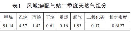 2015年7月,新疆油田公司风城3#配气站的涡轮流量计在现场验收时就进行了此项内容的验证,对该站在用的3套分体式温压补偿型桃色视频入口(双显示式)分别选取了3组数据(工况压力、工况温度、工况压缩系数、标况压缩系数、工况流量、标况流量),将流量计测量的标况流量与由气态方程计算出的理论标况流量进行对比,得出两者误差,根据误差判断在传输过程的失真程度。按**标准要求对风城3#配气站取样得到的天然气组分报告,详细数据如表1所示。根据表1中的天然气组分,以及介质的工作压力、工作温度可计算出工况压缩系数Zg,根据**标准中天然气标准参比条件,可计算出标况压缩系数Zn。